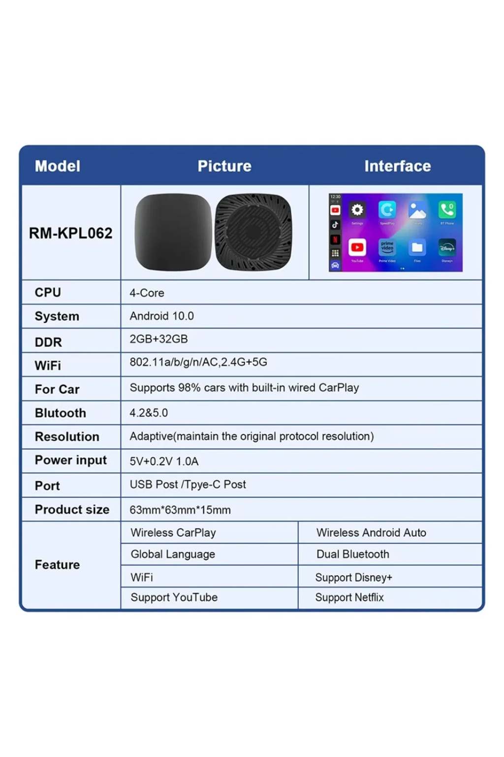 Wireless Carplay Android Araba 4 Çekirdekli Akıcı Fullhd 1080p Wifi 2.4/5g 2gb/32gb