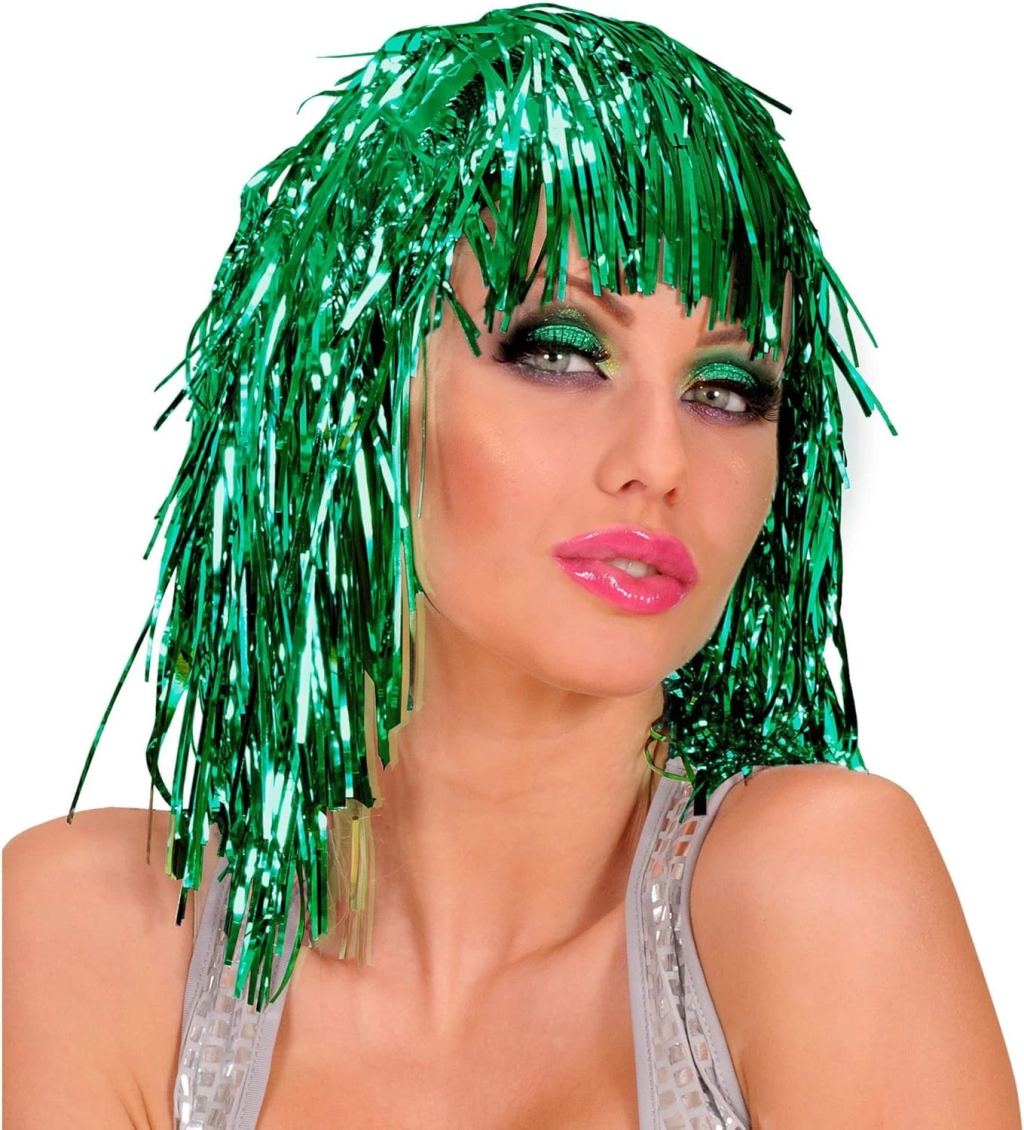 Yeşil Işıltılı Metalize Parti Peruğu
