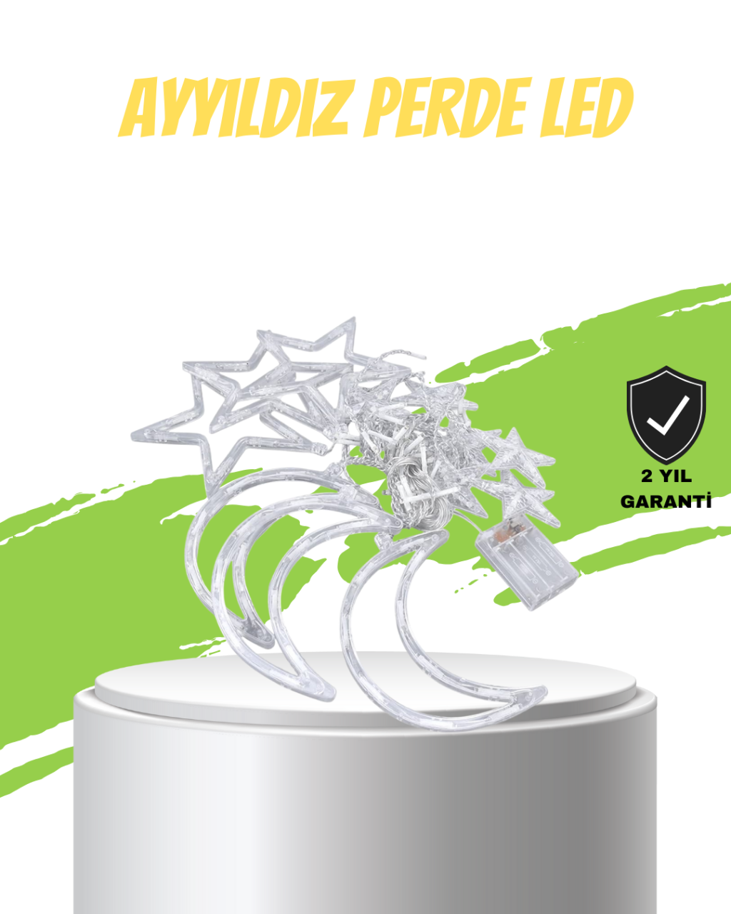 Pilli Çalışan Yıldız Ay Perde Led Işık 2 Modlu Dekorasyon