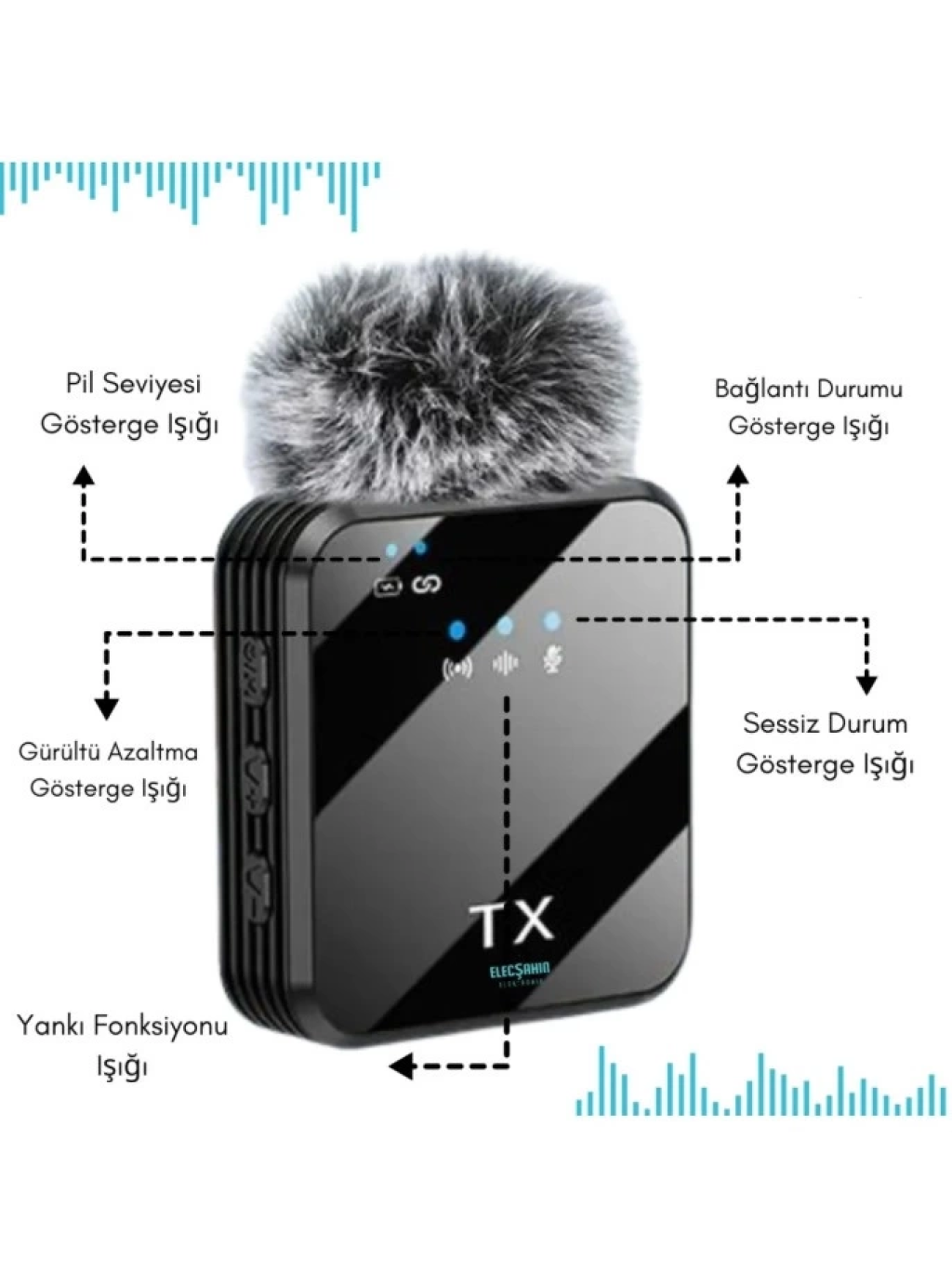 Kablosuz Yaka Mikrofonu Typ-c 2’li Mini Mikrofon