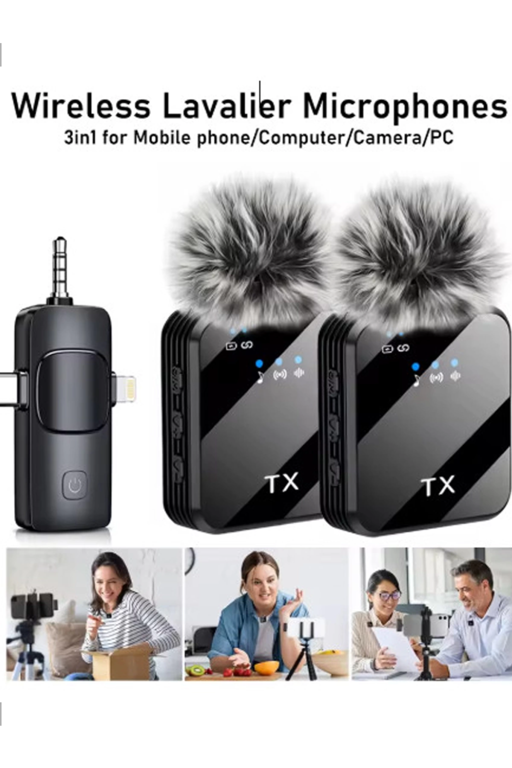 Yüksek Kalite Profesyonel 3 In 1 Kablosuz Taşınabilir Yaka Mikrofonu Youtube Facebook Tiktok